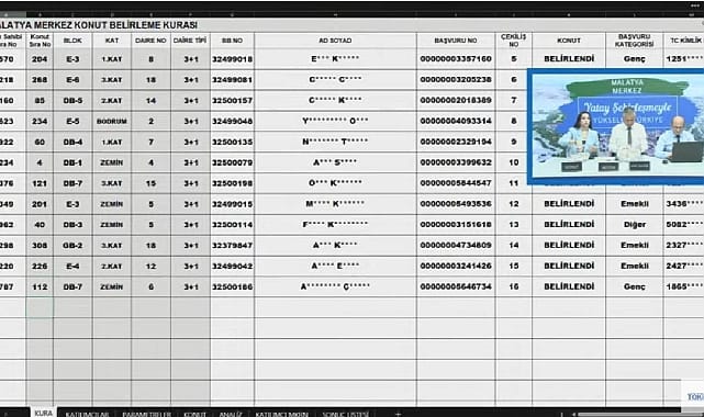 322 dairelik TOKİ Malatya Merkez hak sahipliği konut belirleme kura sonuçları belli oldu