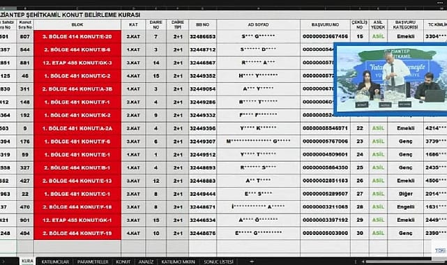 962 daireli TOKİ Gaziantep Şehitkamil projesi hak sahipliği konut belirleme kura sonuçları açıklandı